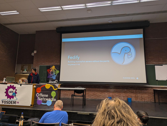 So… the first day of #FOSDEM 2026 was so inspiring, and it really motivated to build more things for #ActivityPub and the #fediverse! Also it was a lot of fun to meet hundreds of kind and smart people!