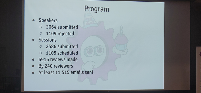 @fosdem #FOSDEM highlights. We tried something new, and it was a bit bumpy, but it was fun! I was volunteered to MC it, which meant I had three talks back to back. I like stress I guess.