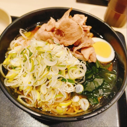 #富士そば しょうゆラーメン。ねぎと豚しゃぶを追加。