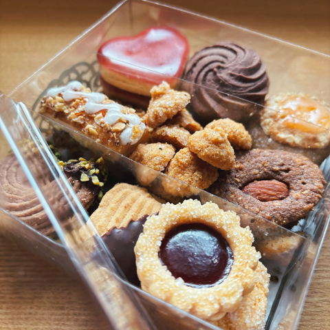 ALT text details木製のカッティングボードの上に並べられた小さなトースト。カリッと焼いたバゲットに白いBrieチーズをのせ、ラズベリーとブルーベリーをトッピングした一口サイズのオープンサンドが複数並んでいる。