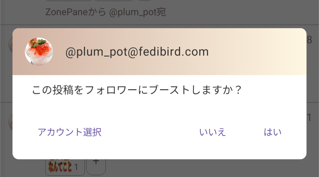 現在スマホでは DAWN #きつねかわいい を使ってるから、スマホからFedibirdにブラウザアクセス出来なくても問題ないのだけど、このアプリだと、Fedibirdの設定にアクセス出来ないのと、投稿を「一旦削除して修正、再投稿」することが出来ないのが不便なんだよね。まぁ実際に削除して投稿し直せば良いのだろうけど… #Fedibird