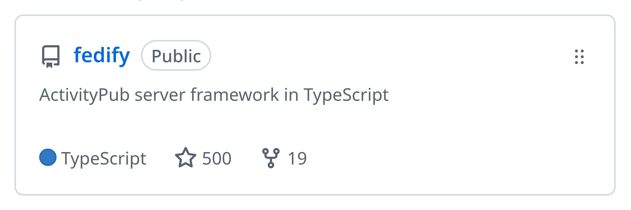#Fedify is an #ActivityPub server framework in #TypeScript & #JavaScript. It aims to eliminate the complexity and redundant boilerplate code when building a federated server app, so that you can focus on your business logic and user experience.
