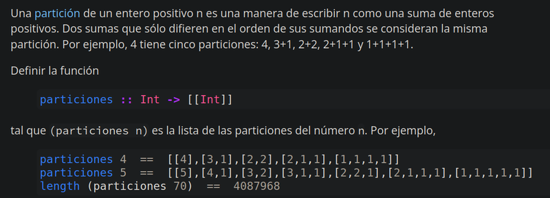 #Exercitium: Particiones de enteros positivos. https://jaalonso.github.io/exercitium/posts/2015/02/05-particiones_de_enteros_positivos/ #Haskell #FunctionalProgramming #Math