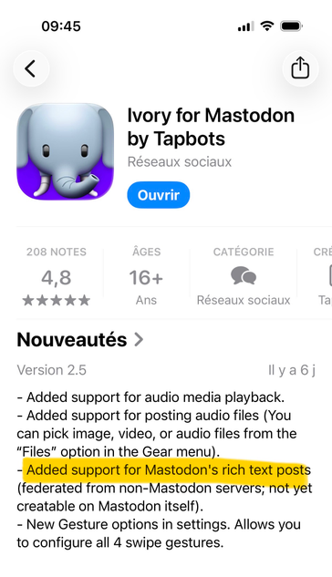 But But But !!!! I just realized #Ivory for iOS have been updated on my iPhone and now supports… markdown 🎉