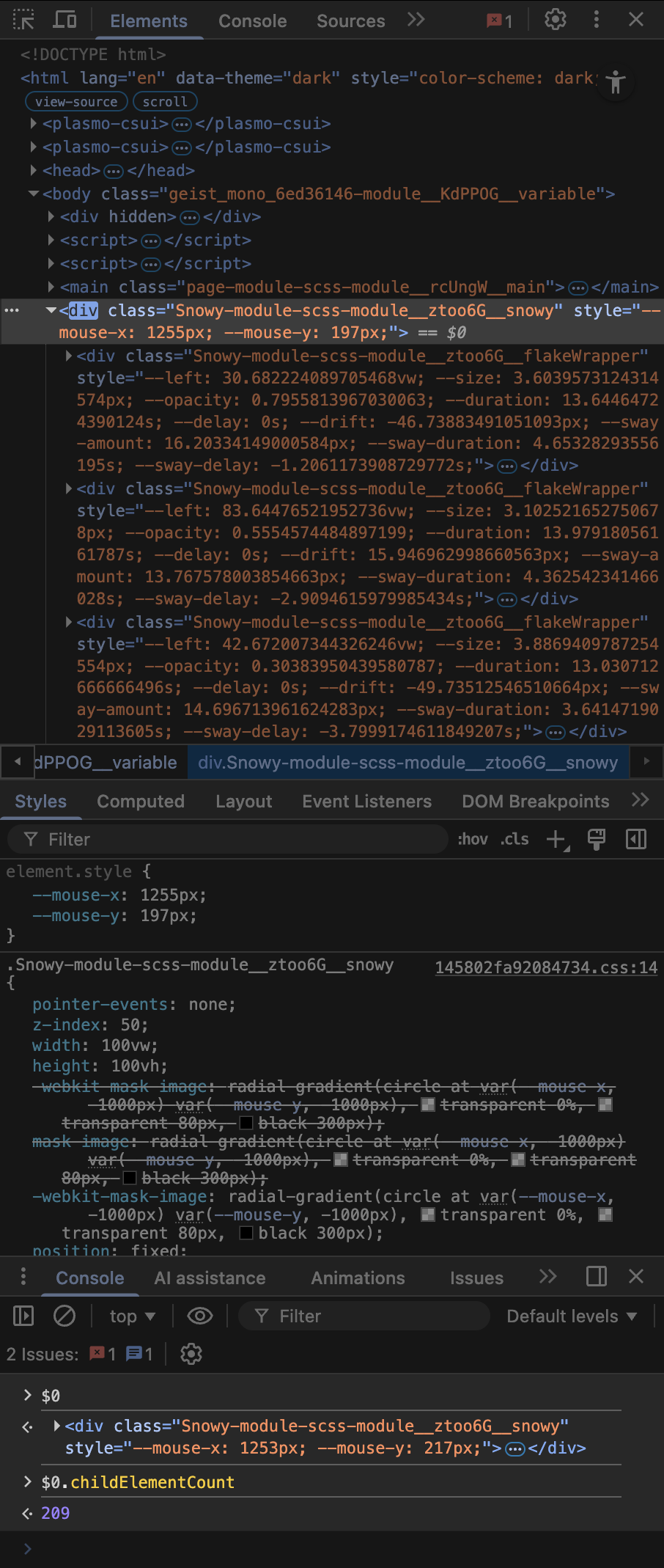 Another concern is that if you are making some particle effects for your website, do not simply render and refresh the particles in the DOM like me. Though this method performs well on Chrome, it will cause a low frame rate on Safari.