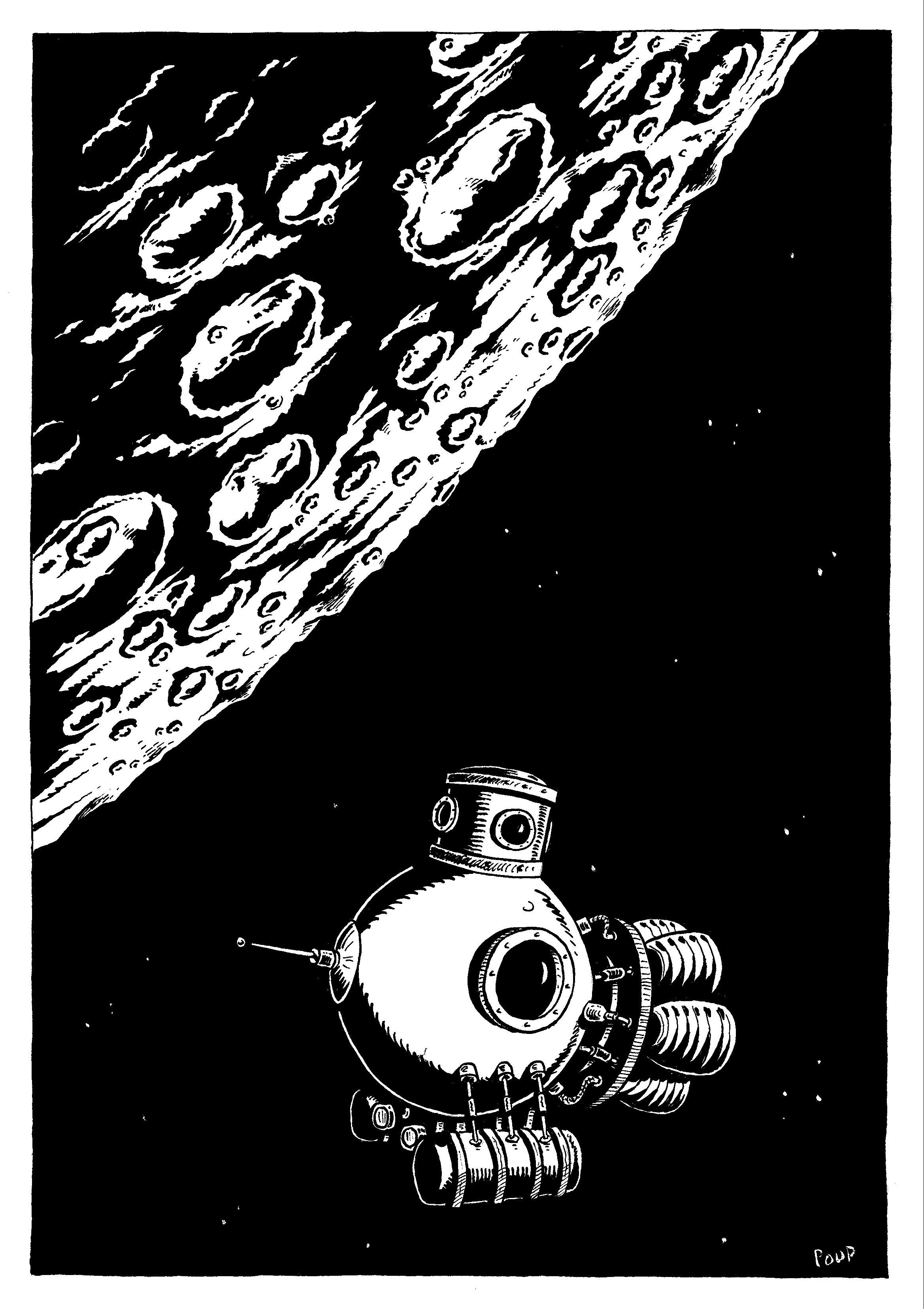 The Moon Greets You #illustration #dessin #drawing #BlackAndWhite #NoirEtBlanc #encredechine #indianink #steampunk #retrofuturisme #retrofuture #mastoart #spaceship #astronaut #lune #moon #spaceman #spacemen #spacetrip #space