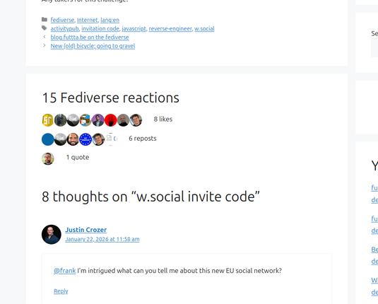Now that Fediverse reactions block is very nice and I did want reactions showing on my blog, so I started looking at the database and the ActivityPub plugin code and saw that all Fediverse reactions were stored in the wp-comment en wp-comment-meta db-tables and were in fact accessible with the WP_Comment_Query class and with quite a bit of trial and error I ultimately ended up with a totally server-side generated solution that looked pretty nice (and similar to the JavaScript-rendered one).